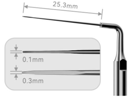 Katana H имеет очень тонкий кончик в форме клинка. Инструмент можно предварительно изогнуть, чтобы адаптировать к форме корневого канала.